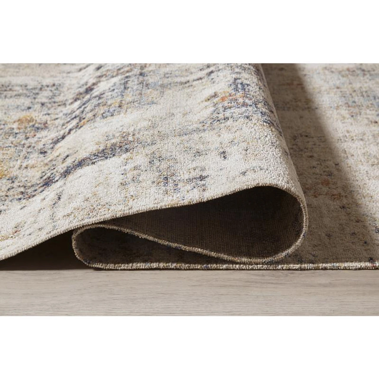 With its striking abstract pattern, this indoor/outdoor area rug leaves so much to the imagination. Its ethereal design with shades of blue and hues of ivory, gray, mustard and burnt orange – dresses up a room with brilliant color, visual texture and a highly contemporary point of view.