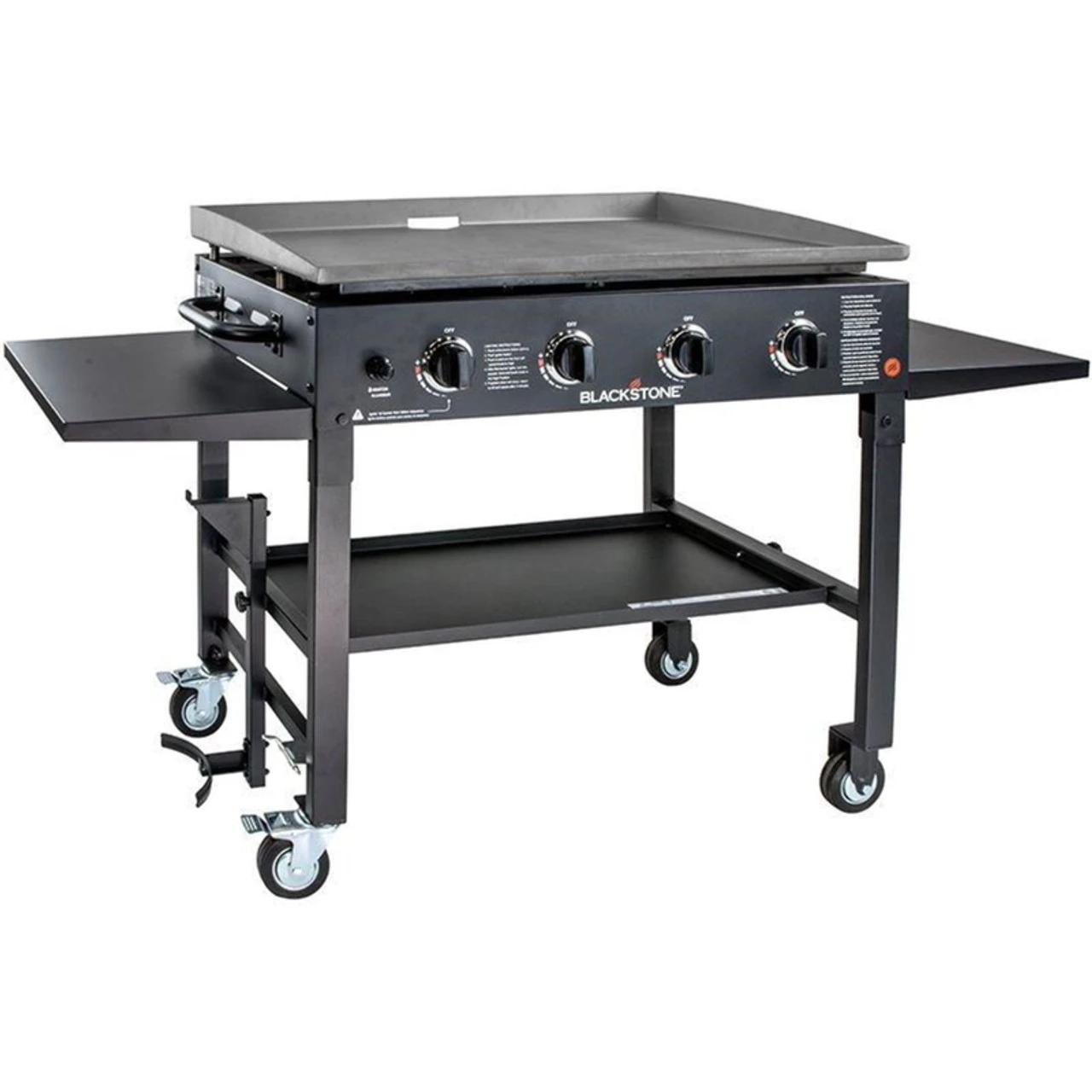 Blackstone Griddles are crafted to high standards of both function and portability. Griddle cooking with Blackstone Griddles will open the door to numerous possibilities in your outdoor cooking experience. Breakfast, Lunch or Dinner, the Blackstone 36 inch Griddle is a perfect fit for fast and consistent griddle results. The solid steel griddle is designed for consistent and even temperature across the griddle surface. Perfect for large groups or a more intimate setting. With (4) independently controlled burners, the Blackstone 36 inch Griddle is a breakfast lover’s dream. Make pancakes, eggs, bacon and just about anything else you can envision on this large 36 inch Griddle.