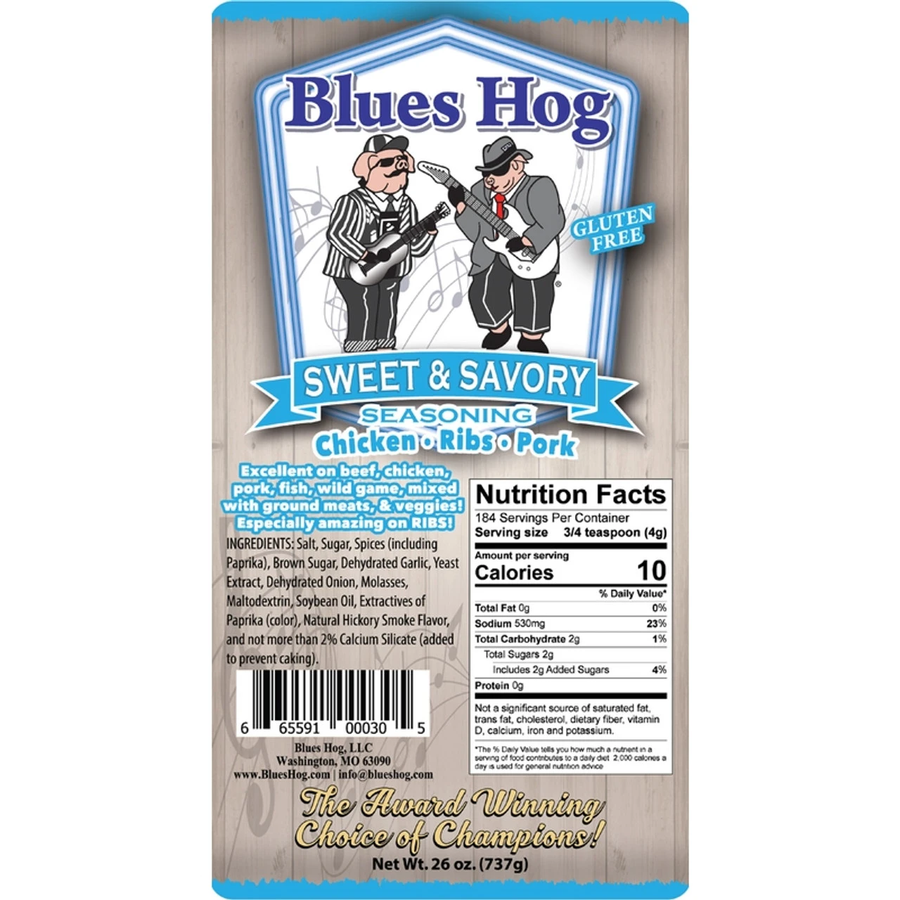 Blues Hog Sweet & amp Savory Seasoning is excellent on chicken, pork, fish, wild game, mixed with ground meats and veggies Especially amazing on RIBS.