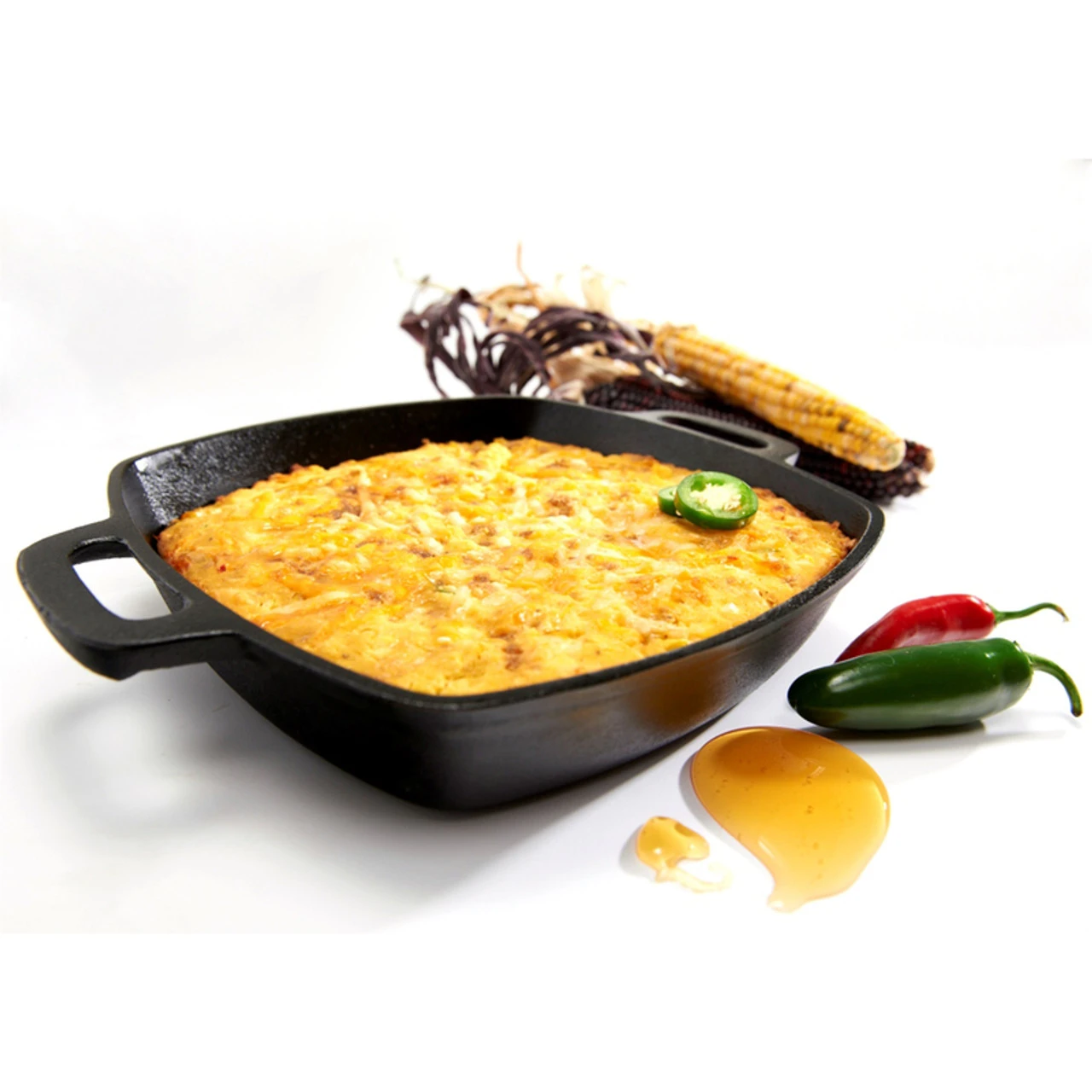 The Cast Iron Skillet maximizes the cooking area for bacon strips, four burgers or French toast. It’s great for side burner, grill surface or in the kitchen.