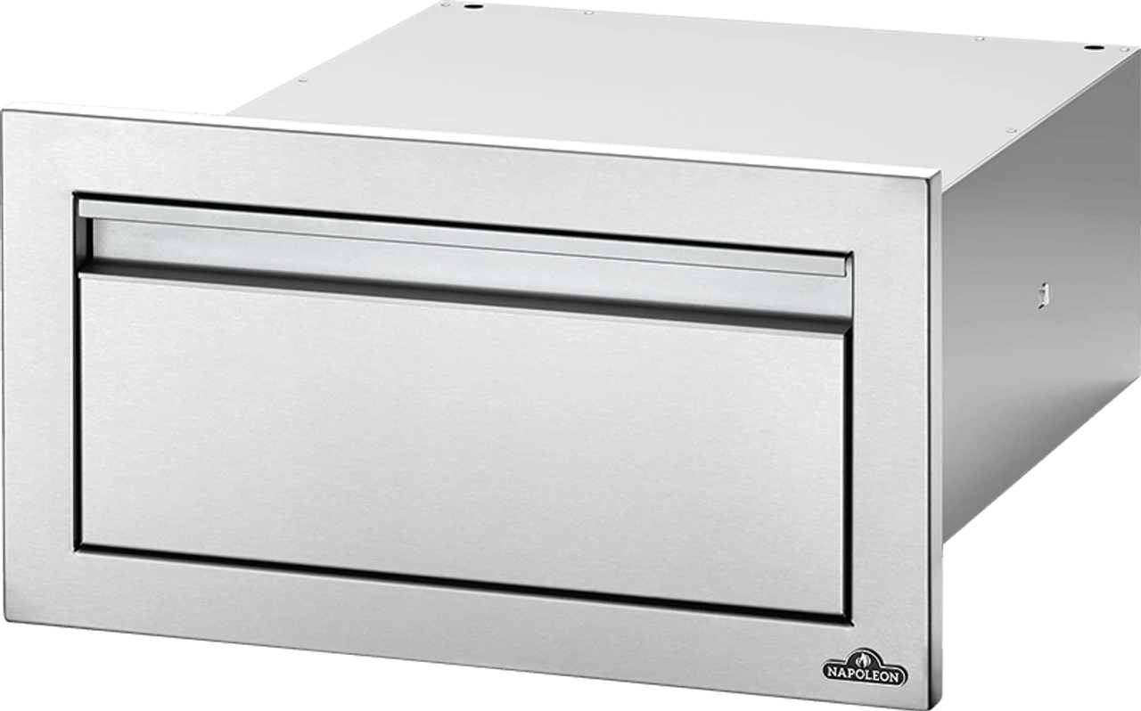 Creating your own custom grill island has never been easier with Napoleon’s Built-In Components. Every great outdoor kitchen needs storage; this stylish single drawer is 18″ x 8″ and features stainless steel construction, soft closing hardware, seamless trim, and anodized aluminum handles. Perfect for storing your favorite Napoleon Accessories, spices, and anything else you need for outdoor cooking.