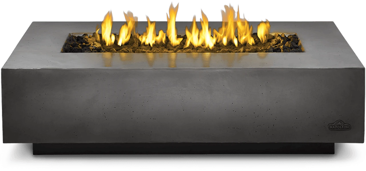 Bring ambiance and coziness to your favorite outdoor spaces with the Nexus 56-Inch Rectangular Patioflame® Table. These flame tables are all unique, hand-crafted and painted to recreate the look of concrete with all of its rustic variance. No one Nexus Patioflame Table is the same, but their rustic-rough look will pair well on stone patios and wooden decks alike. Lava rock media hides the burner to create magical flame patterns that run the length of the table. Fueled by propane, this lightweight unit can move to where the action is. Optional natural gas conversion kits are also available. This Nexus Rectangular Patioflame Table features a 3-year warranty, the best in the industry, and comes with a cover to protect your investment. Extend your outdoor season, with this beautiful Patioflame Table to provide the light and warmth you crave.