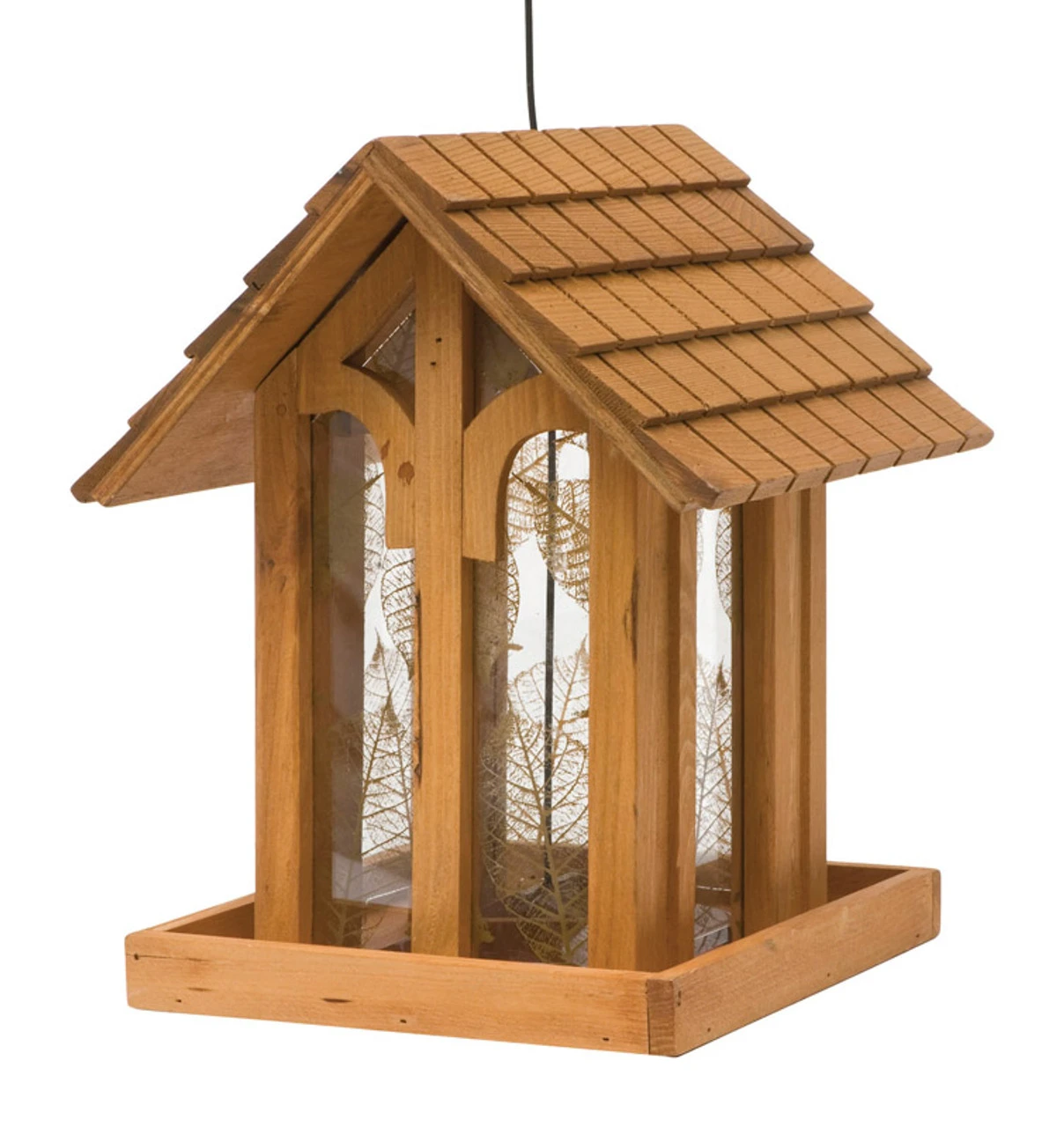 The Perky-Pet mountain chapel wild bird feeder is sure to attract a wide variety of birds to your backyard bird oasis. This wood bird feeder is constructed of fir components. Its beautiful design is made to last, so you can enjoy feeding your feathered friends for years to come. The mountain chapel wild bird feeder is a perfect complement to your porch, backyard or garden area. Easily fill this feeder with up to 3.5 lb of black-oil sunflower seed or mixed seed, place in a quiet and convenient place and watch as multiple birds come to feast from the large seed tray. These transparent seed compartment windows make it easy to monitor seed levels, so you never run out.