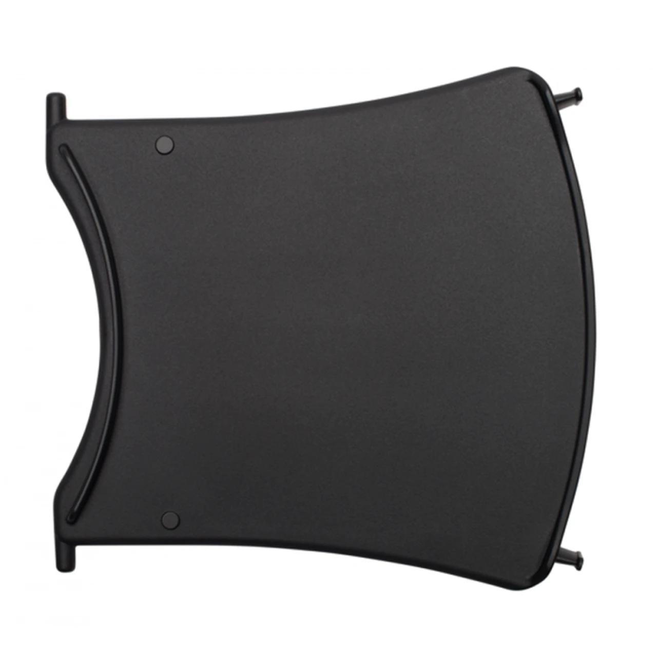 Black folding side shelf for Weber Q100/120 series grills. Shelf fits into top holes on the right or left Q table legs. Folds 180 degrees to store inside the grill, laying on top of grates. Â