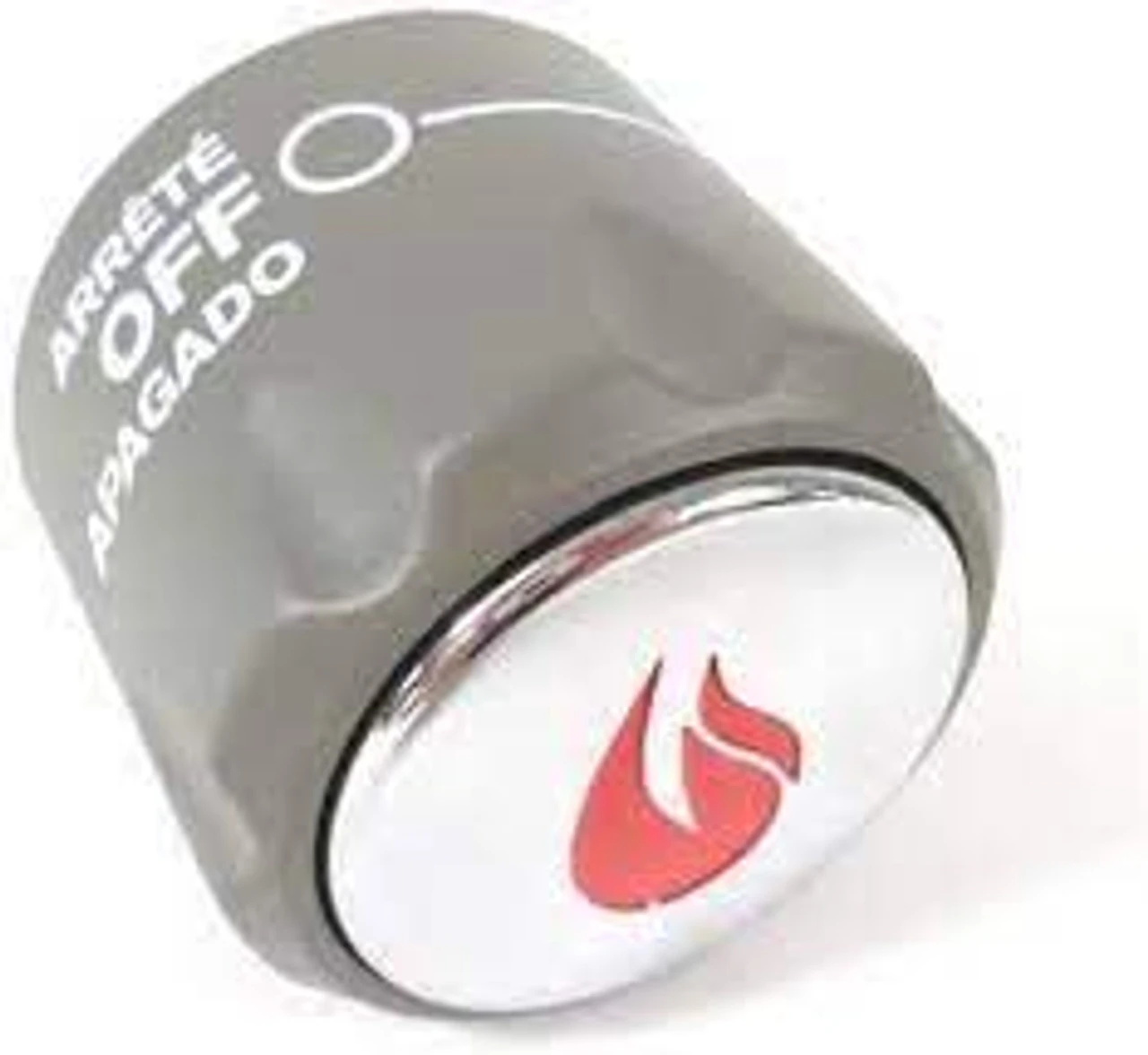 Sear burner control knob. Fits Weber Summit model years 2007 and newer. Diameter measures 1-7/8″. Features finger notch grip, red Sear Flame emblem on chrome top and “On/Off” graphics.