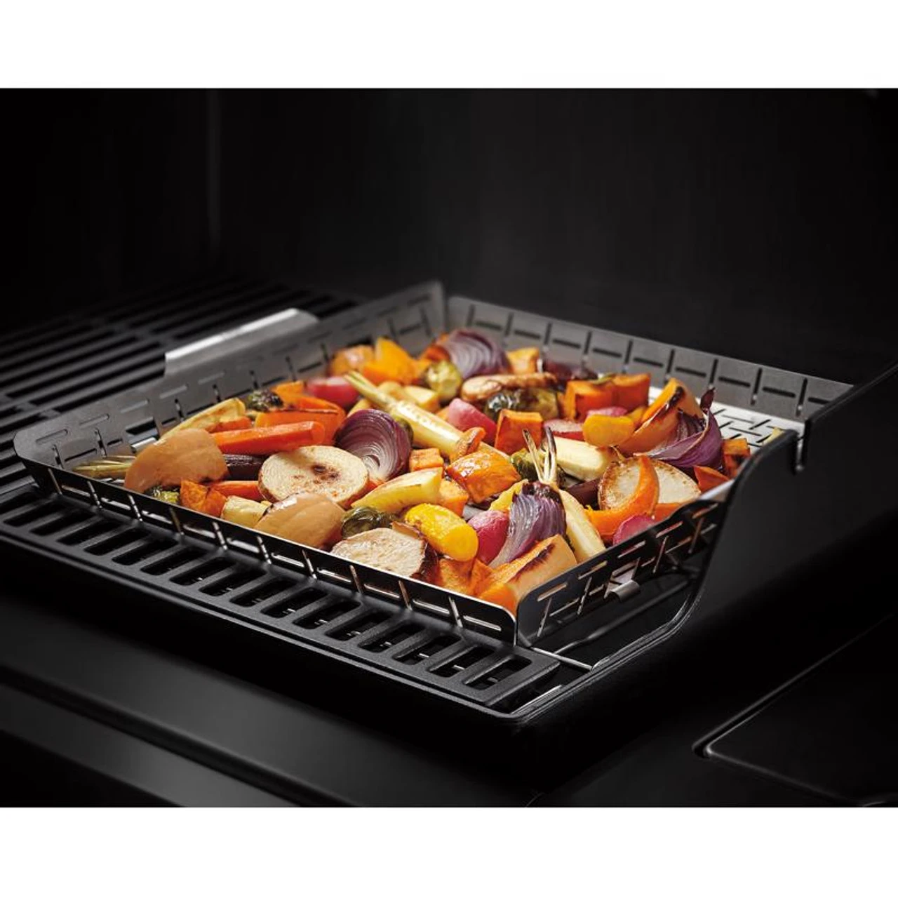Bring your kitchen outside and create food never thought possible in your grill, with the WEBER CRAFTED Outdoor Kitchen Collection. Simply replace your right-side cooking grate with the WEBER CRAFTED Frame Kit and insert the WEBER CRAFTED Roasting Basket to roast, small delicate food without it falling through the grate.