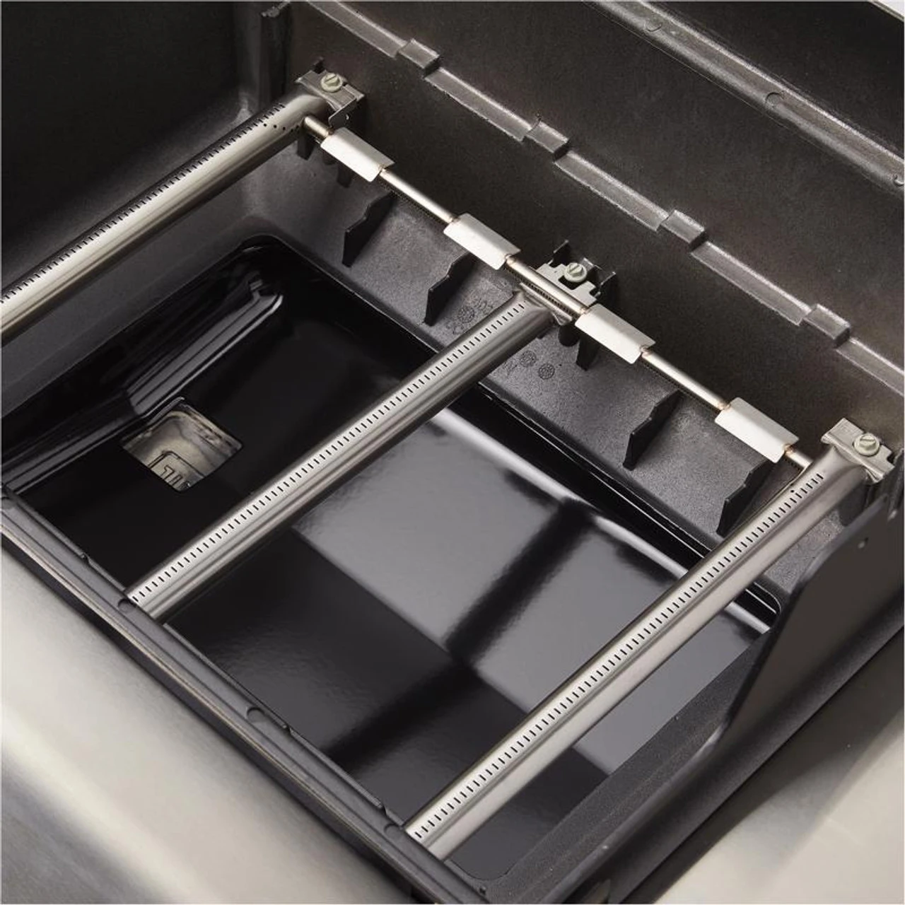 Front access, porcelain-enameled grease tray with catch pan
